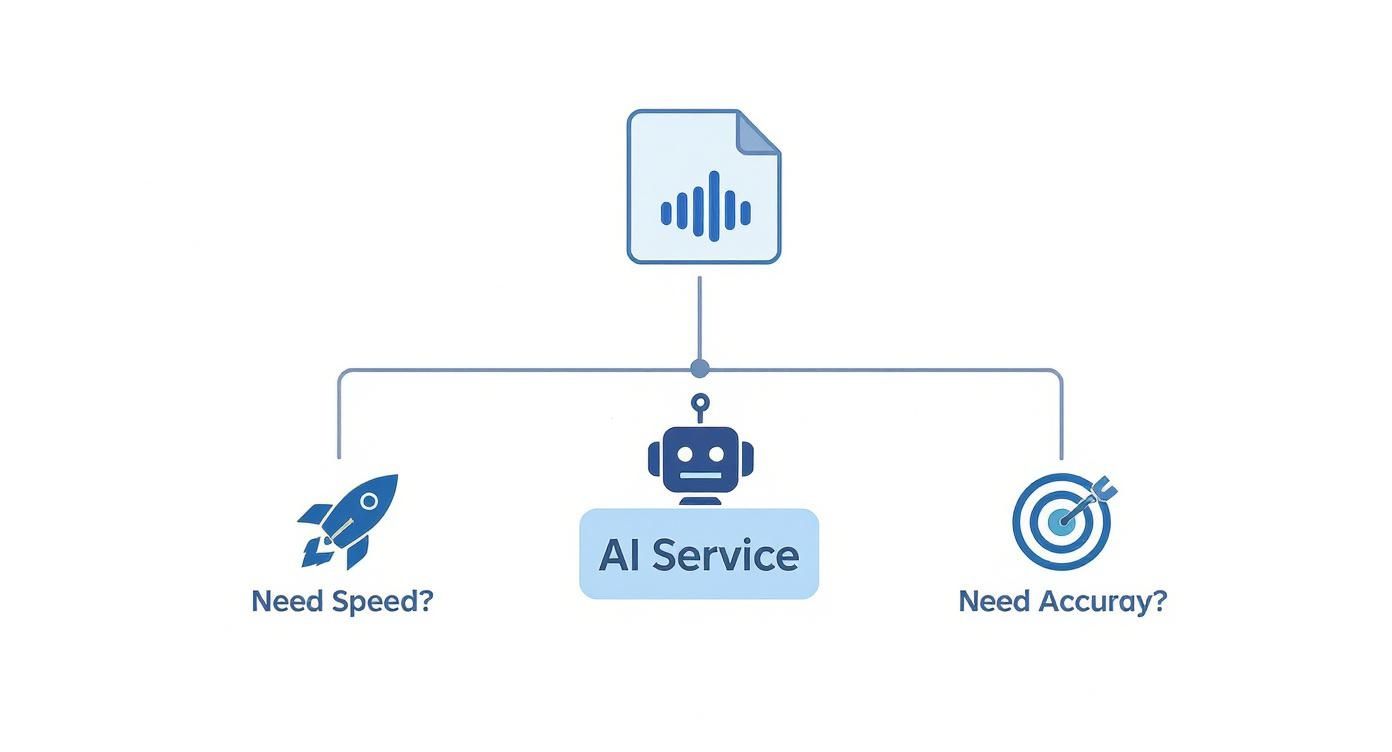 When you're picking an audio-to-text transcription service, it's easy to get lost in a sea of features. But what truly makes a difference in your day-to-day work? It all boils down to a handful of core performance metrics.